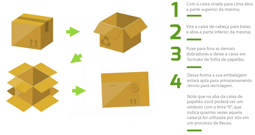 Acompanhe abaixo um passo a passo com as instruções de como desmontar as embalagens, para o retorno